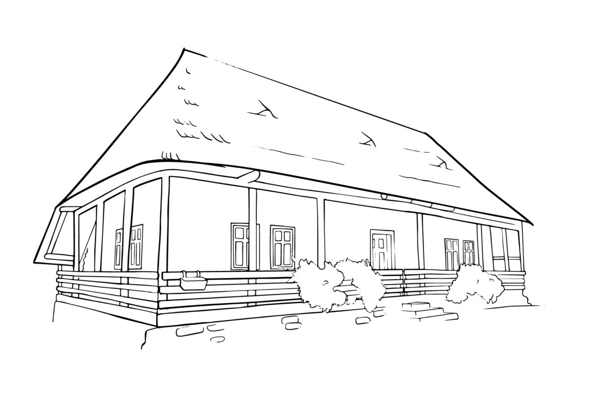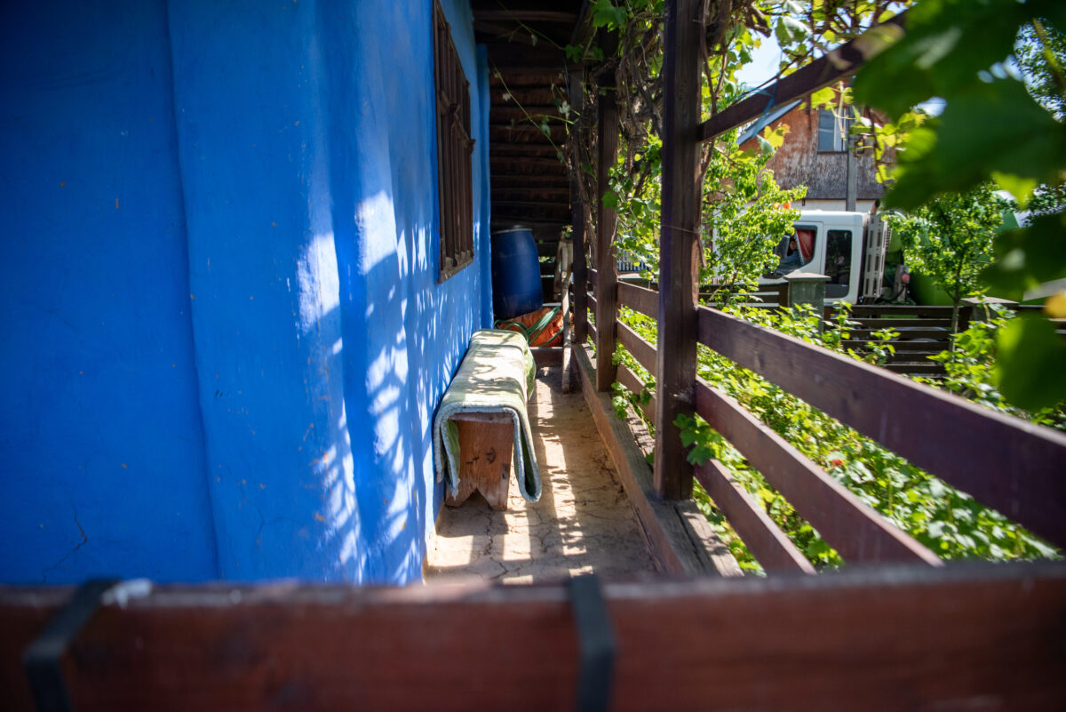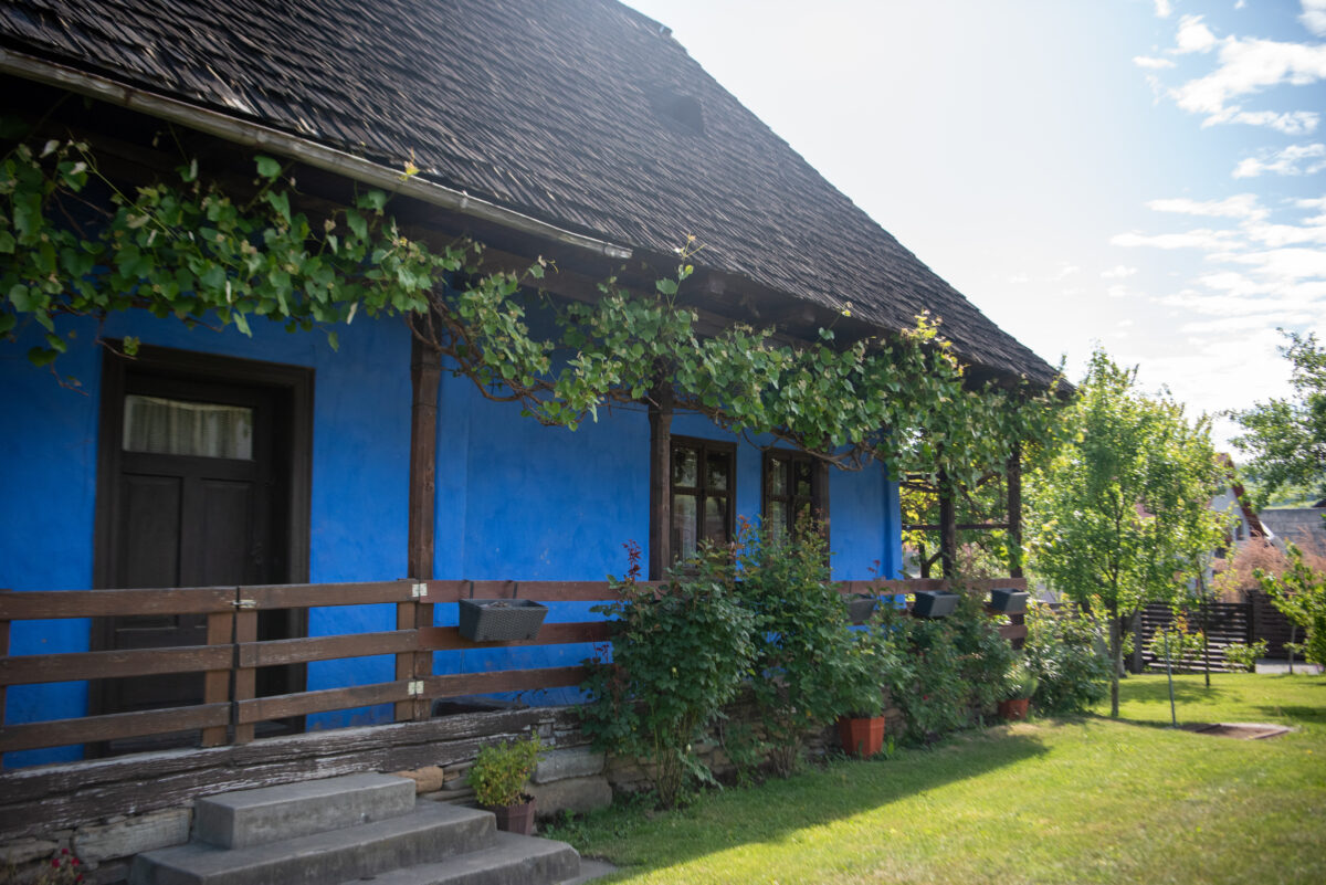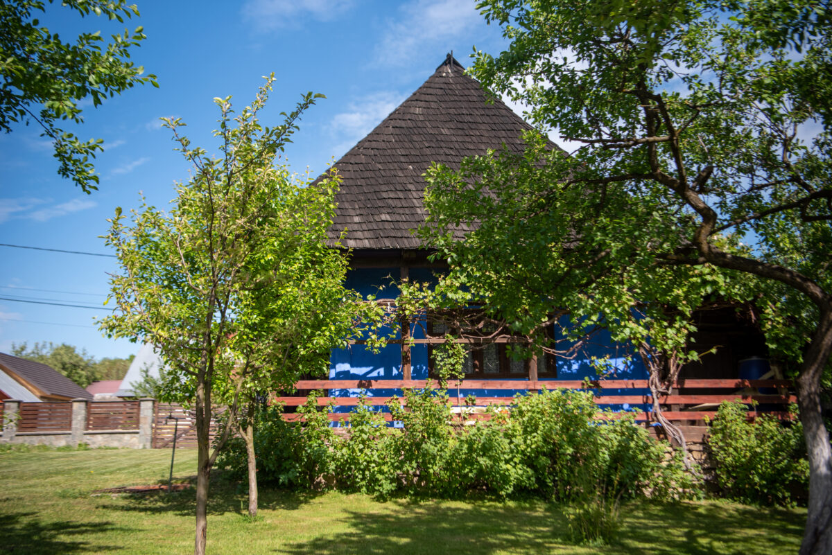 Construcția se remarcă printr-o arhitectură specifică rurală, având prispă pe trei laturi ale casei, cu o zonă de depozitare închisă cu scânduri în spate. Construcția prezintă elemente de lemn sculptate specifice zonei în elementele de lemn ale prispei și se remarcă prin culoarea albastră a fațadelor și prin acoperirea cu șindrilă, având două ochiuri specifice în învelitoare. Tâmplăriile de lemn sunt cele originale.